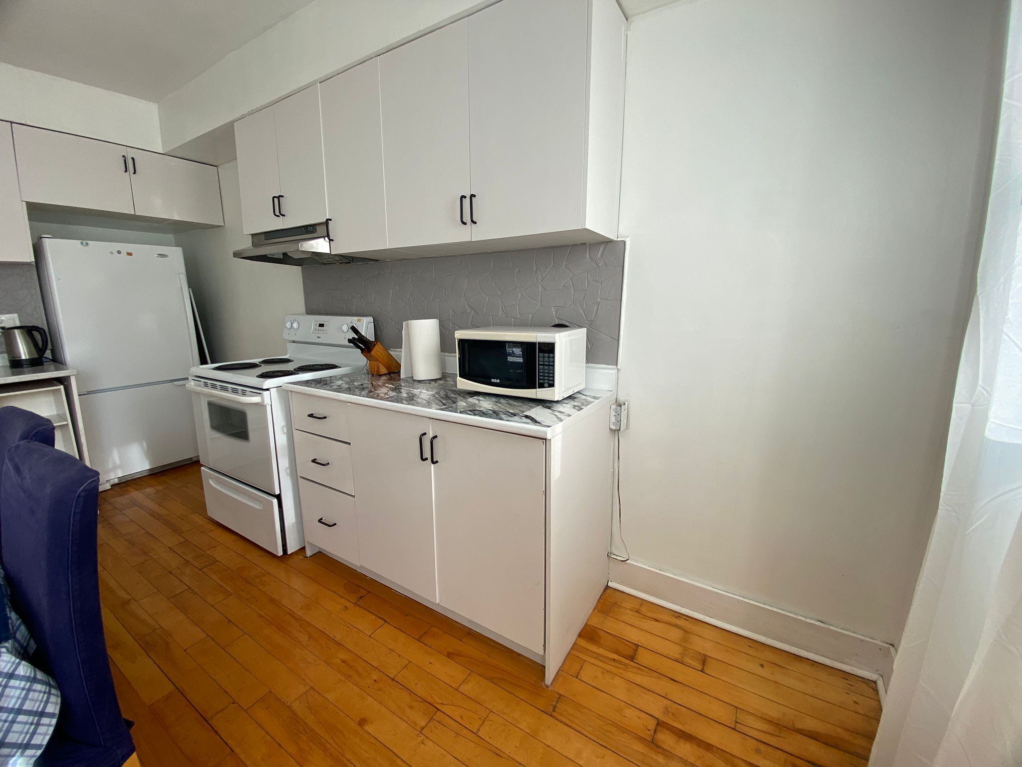 Cuisine fonctionnelle avec les équipements essentiels pour un usage quotidien en colocation.